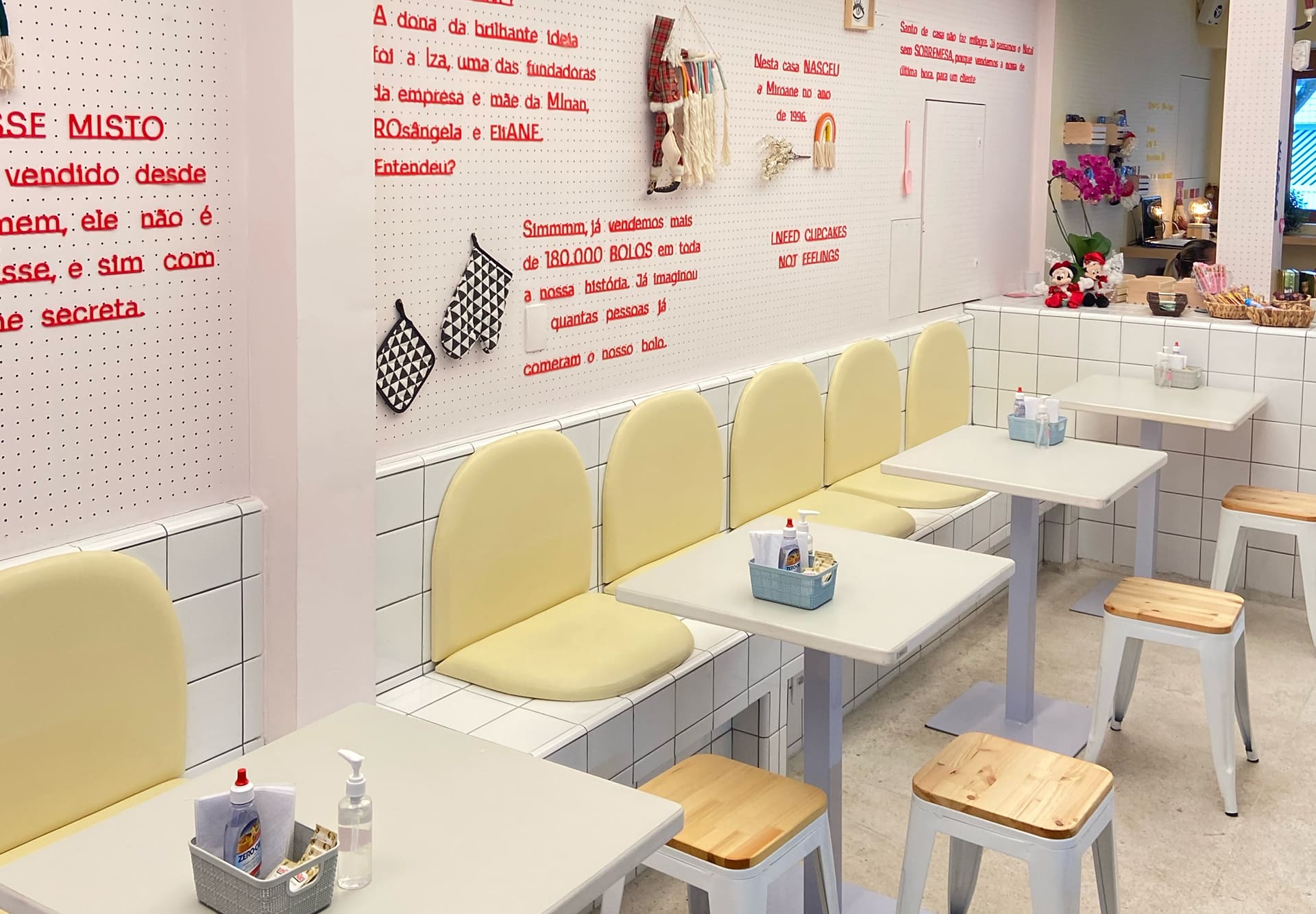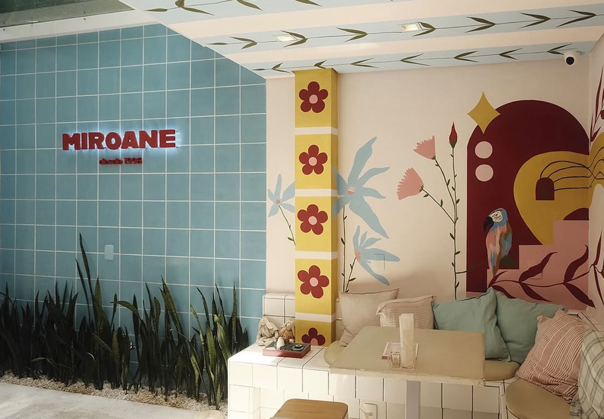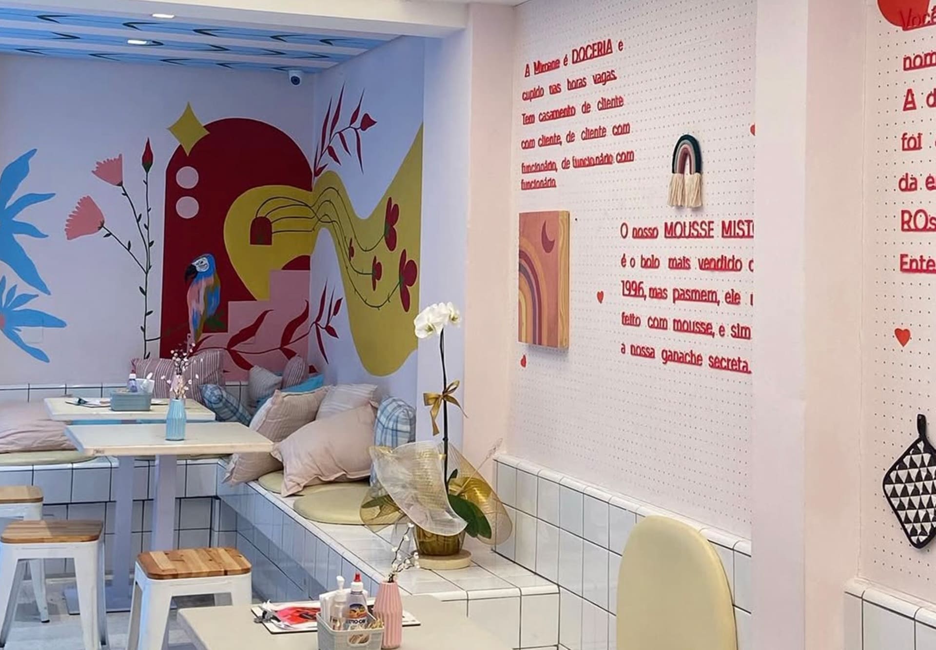 Ampliação da loja: adequações estruturais, hidráulicas e elétricas, personalização do projeto com construção de bancos e balcões em alvenaria, aplicação de revestimento e pintura artística.